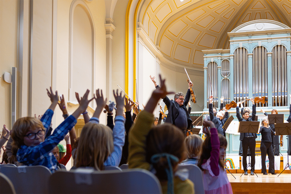 CAMERATA & KIDS ist das einzigartige musikalische Angebot für die ganze Familie. Die Kinder (4 bis 10 Jahre) werden von unserer Musikvermittlerin Evamaria Felder vor dem Konzert in Empfang genommen und in einem interaktiven Workshop auf einen bestimmten Teil des Konzerts (ein Werk, mehrere Werke oder einzelne Sätze) vorbereitet. Sie lernen dabei über die Musik und die Komponisten und experimentieren mit Klang, Rhythmus und Farbe. Im zweiten Konzertteil kommen die Kinder in den Konzertsaal und sitzen in den ersten Reihen unmittelbar vor dem Orchester. Sie hören das Werk, auf das sie vorbereitet wurden, altersgerecht moderiert von Evamaria Felder. Die Erwachsenen können das ganze Konzert geniessen, während die Kinder professionell von unseren Musikpädagog:innen in die Welt der Musik eingeführt werden.